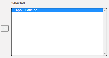 Now let's suppose you don't want the statistics of __App__Latitude after all. Rather you want __App__Longitude and __App__Temperture instead. You can move __App__Latitude back to the "Select From" list by clicking on it (note the arrow changes direction):[a][b]